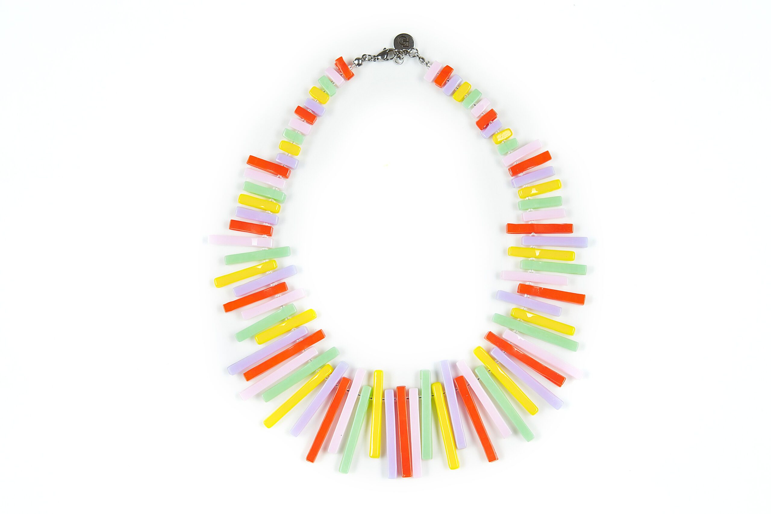 Lánc anyaga: fusing technikával készült üveg, nemesacél ékszeralkatrész