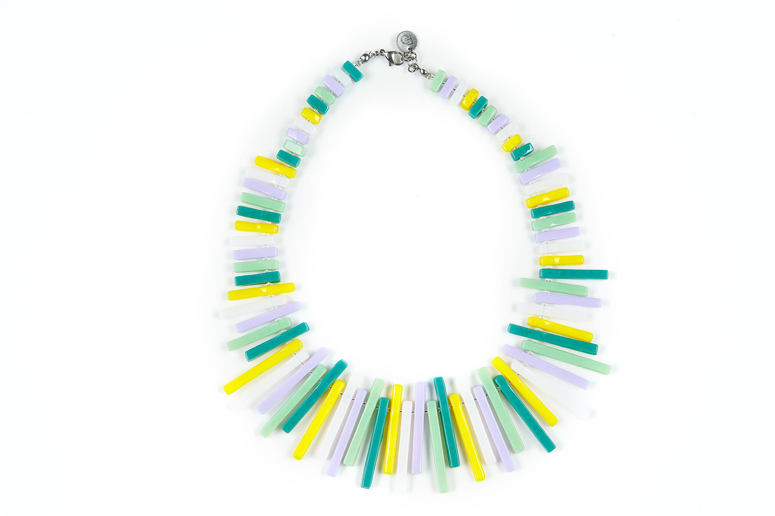 Lánc anyaga: fusing technikával készült üveg, nemesacél ékszeralkatrész