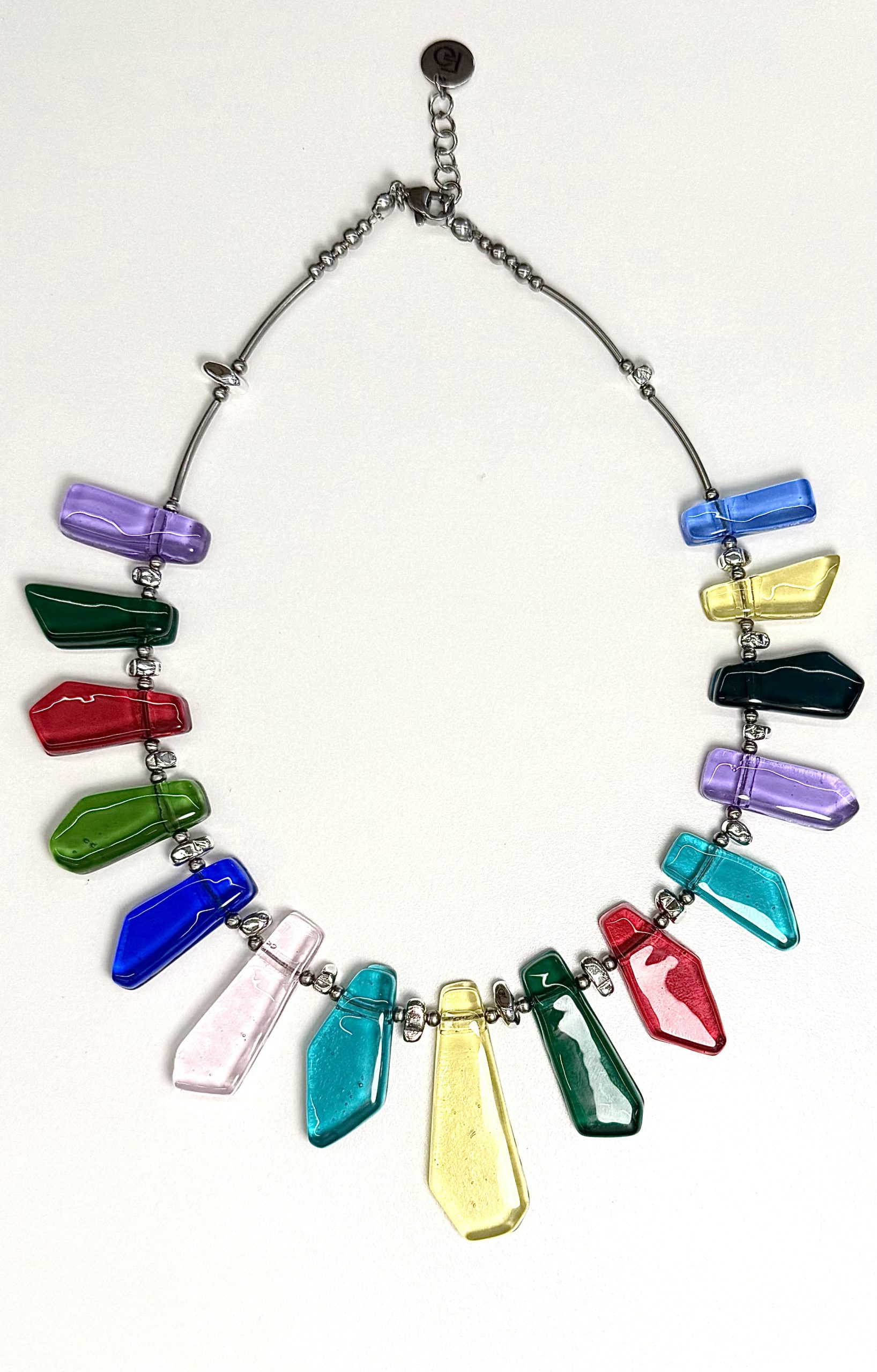 Ékszer anyaga: fusing technikával készült, egyedi designer üveg ékszerelemek, nemesacél ékszeralkatrész